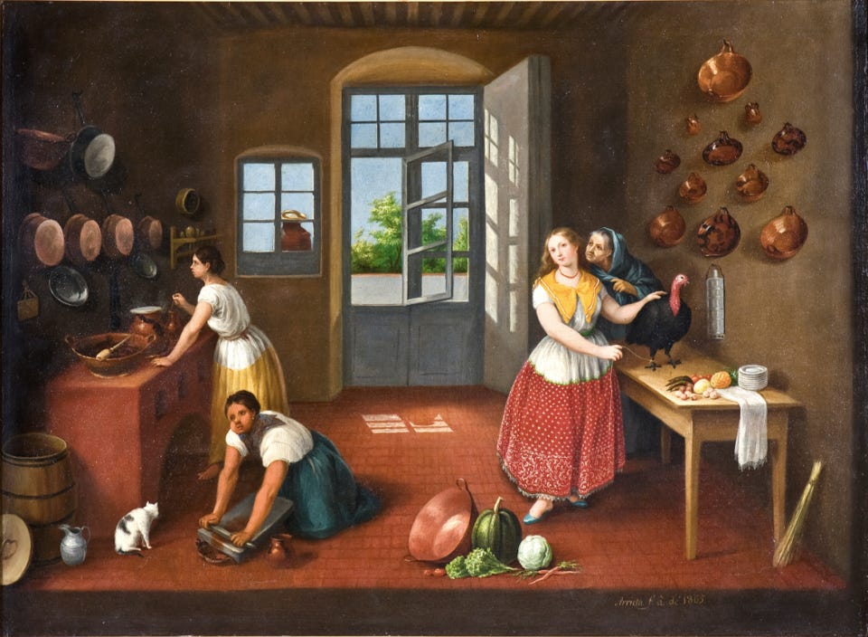 Cocina poblana, pintura de José Agustín Arrieta (1850).